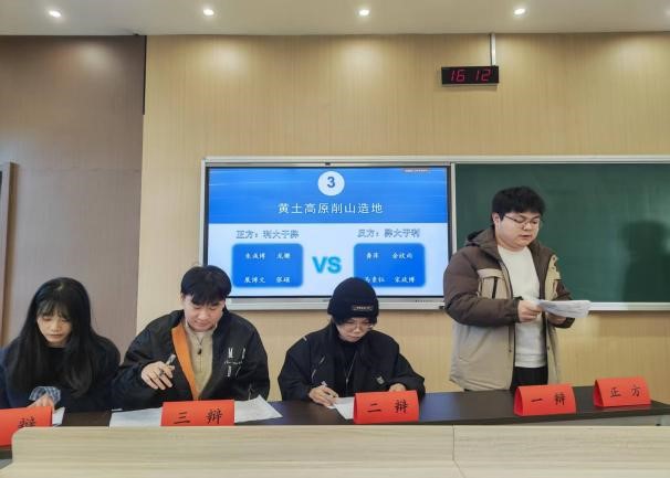 2025年12月24日下午,依托地质工程研究生专业课《黄土工程地质》,世界杯地质工程系在雁塔校区举办了专题学术辩论赛。2025级地质工程专业研究生围绕“黄土高原水土流失、黄土高原气候暖湿化、黄土高原削山造地”等辩题进行了三场激烈的辩论赛。辩论赛由2025级研究生陈涛主持。邀请地质工程系主任朱兴华教授、成玉祥副教授、安鹏副教授等三位评委对辩论赛进行了点评,并分别从黄土高原250万年以来的沉积与侵蚀特征、黄土物理力学机制、工程伦理与经济、黄土高原水土资源环境与生态地质等方面对辩题进行了深度剖析。通过本次活动,同学们不仅扩展了知识面、夯实了专业基础,同时具备了从地质、工程、生态、经济等多维度辩证看待黄土高原重大工程的思维。