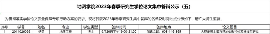 世界杯体育官方网站2023年春季研究生学位论文集中答辩公示(五)