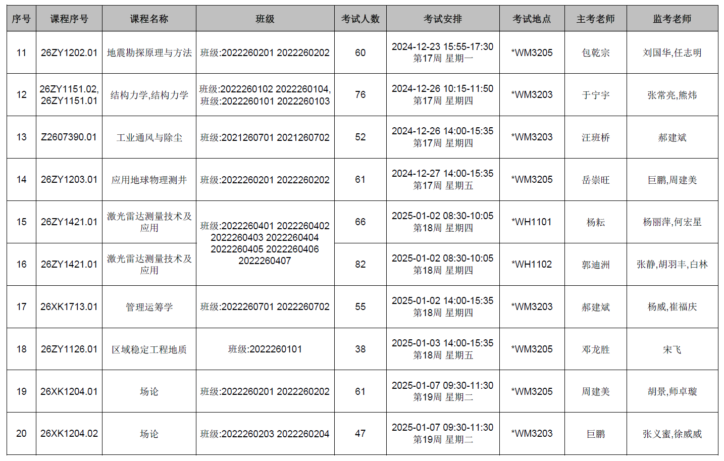 本学期第11周后结课的世界杯体育官方网站开课课程期末考试监考安排已发布,监考安排学院已经在本科教务系统中填报完成(监考教师可同时在本科教务系统中查看监考安排)。为确保考试平稳顺利进行,学院已将相关监考工作安排表上传到附件中,请各位老师及时下载查阅,并按时完成监考工作。