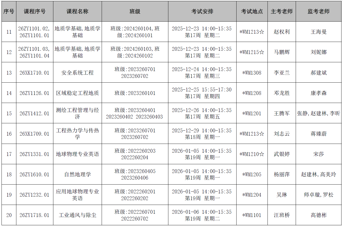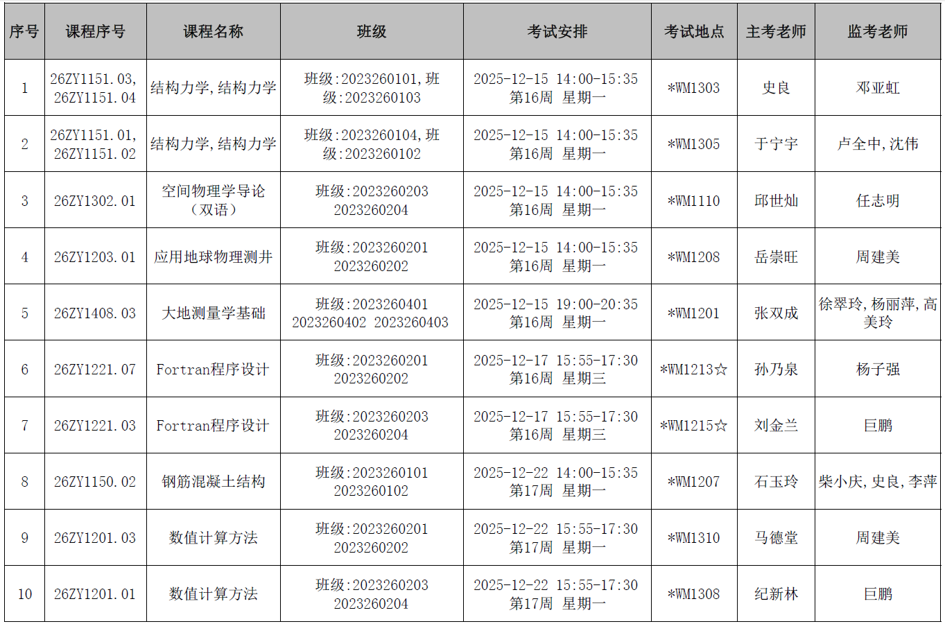 本学期第11周后结课的世界杯体育官方网站开课课程期末考试监考安排已发布,监考安排学院已经在本科教务系统中填报完成(监考教师可同时在本科教务系统中查看监考安排)。为确保考试平稳顺利进行,学院已将相关监考工作安排表上传到附件中,请各位老师及时下载查阅,并按时完成监考工作。