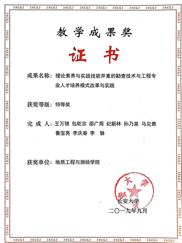 近年来,组织在校学生参加国家级、省级和校级创新创业训练、“互联网+”、培优计划项目近80项;全国“挑战杯”、大学生创新创业竞赛、学科竞赛等奖项63项;承担国家自然科学基金、国家科技重大专项、国家重点研发计划等纵横向科研课题90余项;主持或参与获国家科技进步二等奖1项、国家级教学成果奖1项、省级教学成果奖3项、省部级科学技术一等奖1项、二等奖6项、三等奖12项,出版译著和专著10部。承办了“第四届“创新杯”全国大学生地球物理知识竞赛(2018)”、“第三届重磁电方法及应用国际研讨会(GEM2019)”、“第六届全国岩石物理学术研讨会(2020)”、“首届青年地球物理大会(2024)”等重大学术会议及全国性学科竞赛活动,获得了国际勘探地球物理学家学会(SEG)、中国地球物理学会(CGS)以及国内外兄弟院校及同行的一致赞誉。